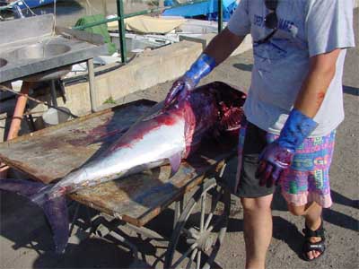 semplice tagliare il tonno, in poche parole "macellarlo",