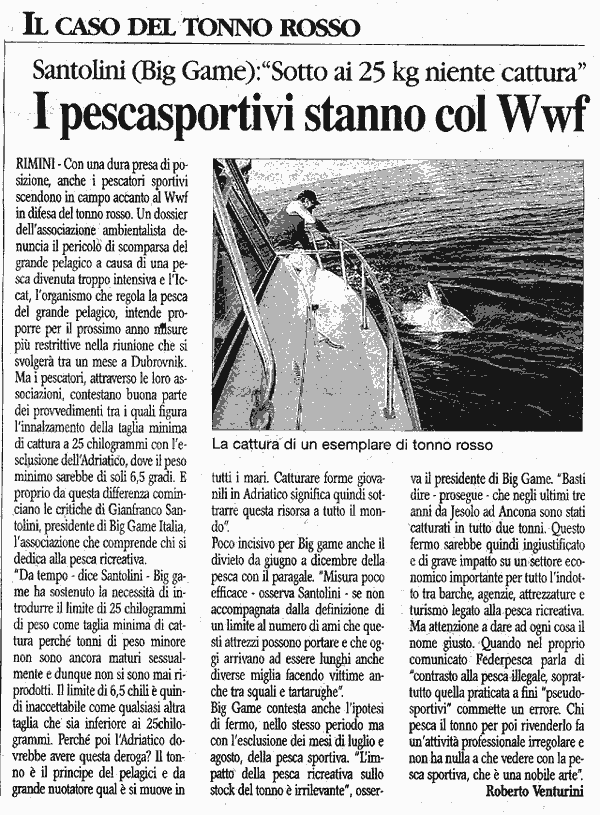 per sponsorizzare la misura minima del tonno di 23/25 kg