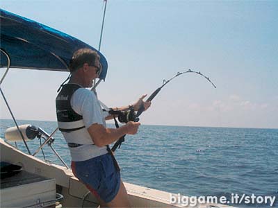 pesca portiamo la canna a prua si siede e comincia il combattimento,