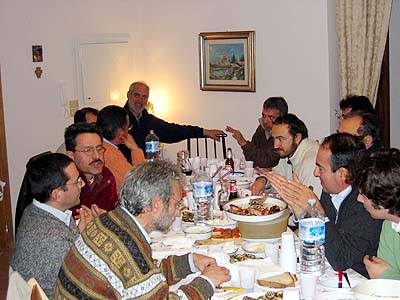 Un bel gruppo affiatato di 35 pescatori alle prese con la cucina tradizionale pugliese tra bruschette, cavatelli con i funghi, latticini e carne alla griglia il tutto ben colorato con dell'ottimo vino rosso.