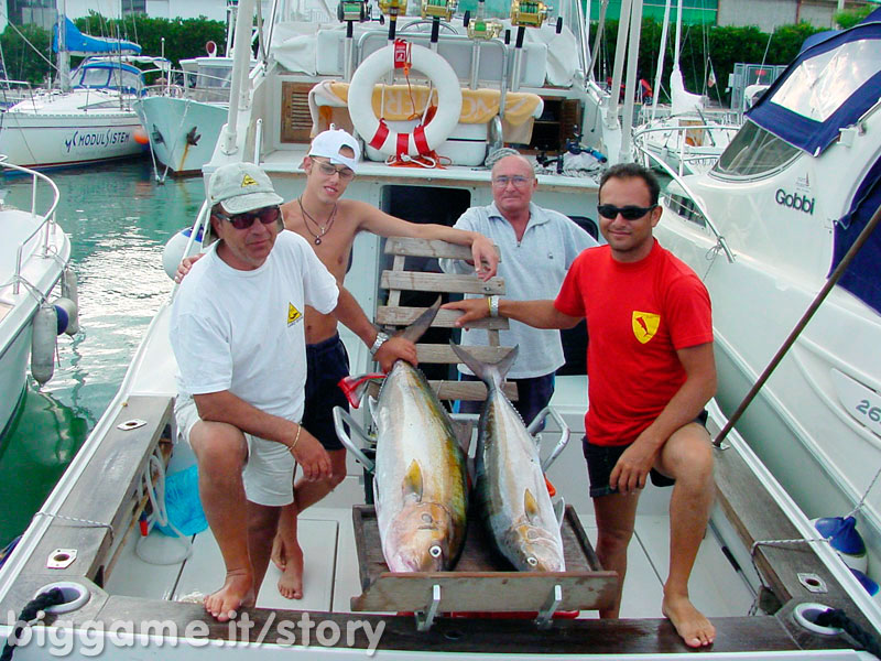 Via vela destinazione per lo stesso posto di due giorni prima; siamo quasi arrivati, mancano ancora poche miglia e cosa ti vedo? Un tonno di discrete dimensioni completamente fuori dall'acqua a neanche 100 metri dalla barca. Grido subito la cosa al comandante Domenico, che neanche a dirlo, determinato, rallenta e chiede la posizione, poi vi si dirige deciso, rallenta e comincia il getto delle sarde sulla scia.