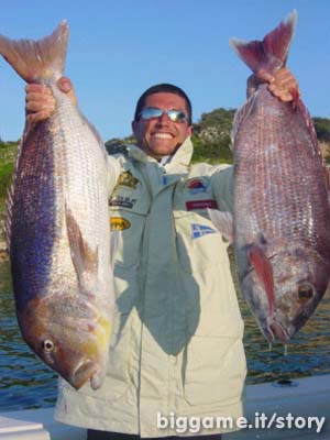 Finalmente eccolo a bordo, un bel dentice praio di 5 kg ci lascia