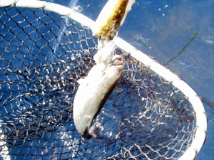 tenendola fuori dall'acqua e via nuovamente nel blù