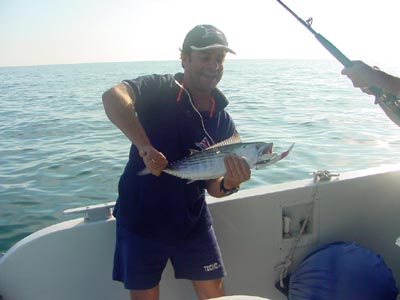 Roberto Ciaroni dell'Imbarcazione LAURA in combattimento con il tonno, che verrà successivamente rilasciato