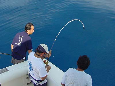 Giuseppe Belleri (ECCOCI) in combattimento con una delle tante alalunghe da lui tirate su