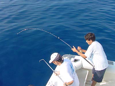 Giuseppe Belleri (ECCOCI) in combattimento con una delle tante alalunghe da lui tirate su