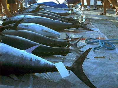 Le fasi della pesatura dei tonni