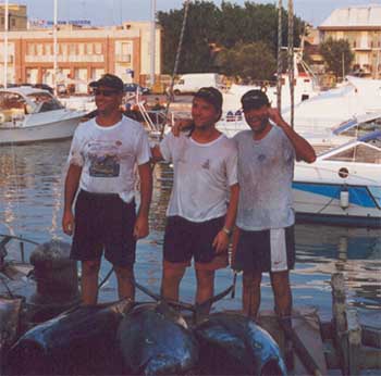 L'imbarcazione Verdeluna di Tomassoni Carlo (CN Pesaro) alle 12,55 allamava un tonno (44°01'N e 13°29'E) di piccole dimensioni infatti il combattimento é durato poco meno di 20 minuti. Durante la giornata di pesca alla stessa imbarcazione si é avvicinato in superficie uno squalo volpe fra il primo palloncino e la barca che però ha rifiutato l'esca a pochi centimetri dalla bocca.