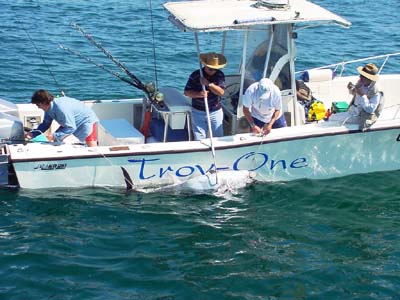 Appena la barca giuria affianca la barca con a bordo il sindaco, eccoli che effettuano la prima cattura con rilascio.