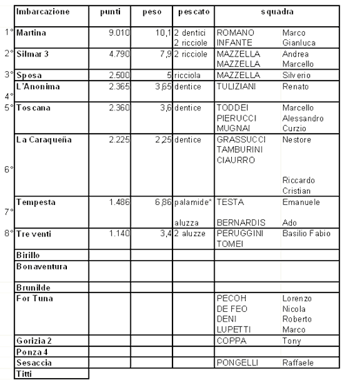 consecutivo, il pesce che li avrebbe portati sul podio e